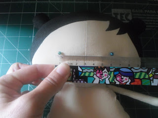 Depois da tinta seca,use uma régua para marcar o local dos olhos com a ajuda de alfinetes,assim ficará retinho: