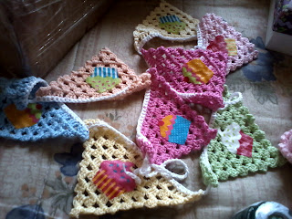 E essas bandeirinhas de crochê decoradas com cupcakes?Muito fofas!